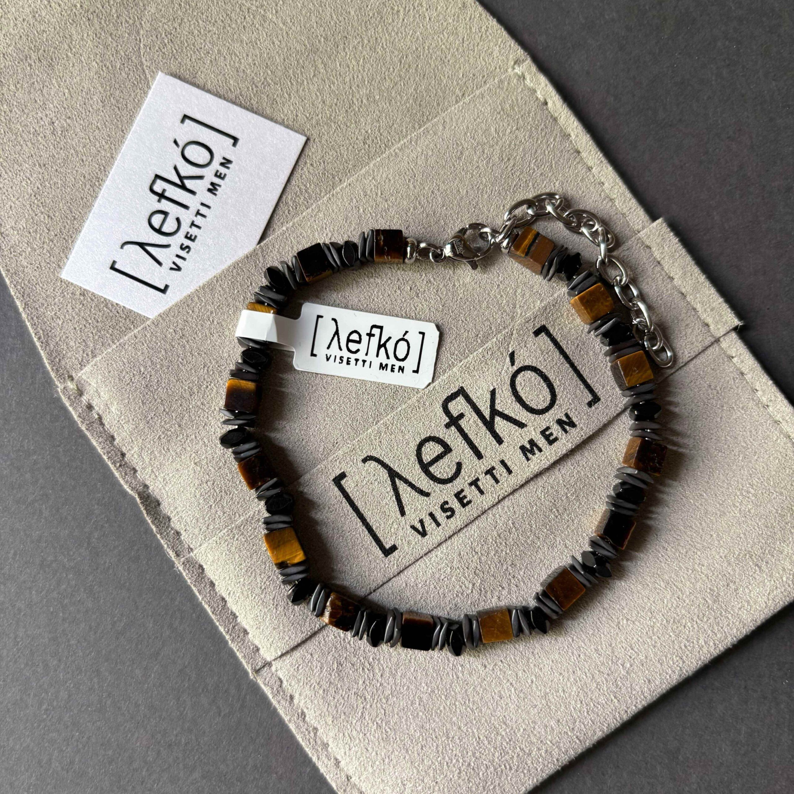 Ανδρικό βραχιόλι λefko κατασκευασμένο από υψηλής ποιότητας υλικά και φυσικές ημιπολύτιμες πέτρες. Ιδανική επιλογή για καθημερινό στυλ ή δώρο. Συνδύασέ το με ρολόι ή άλλα bracelets για ολοκληρωμένο ανδρικό look. Ανθεκτικό στο νερό και δεν μαυρίζει, κατάλληλο για καθημερινή χρήση.