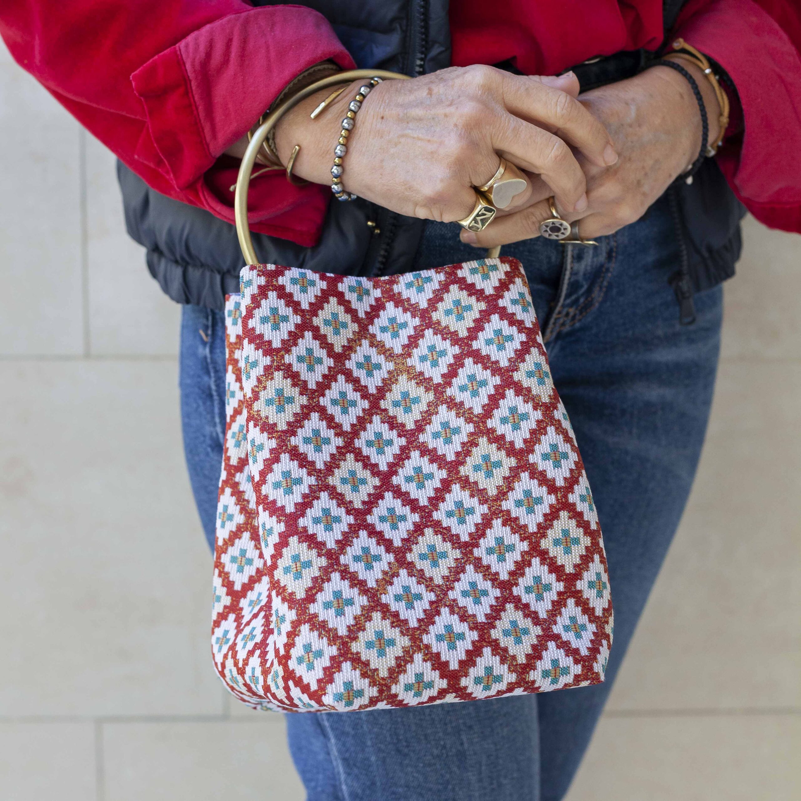 Handmade checkered pattern Bag with Hoop Handle – Panino