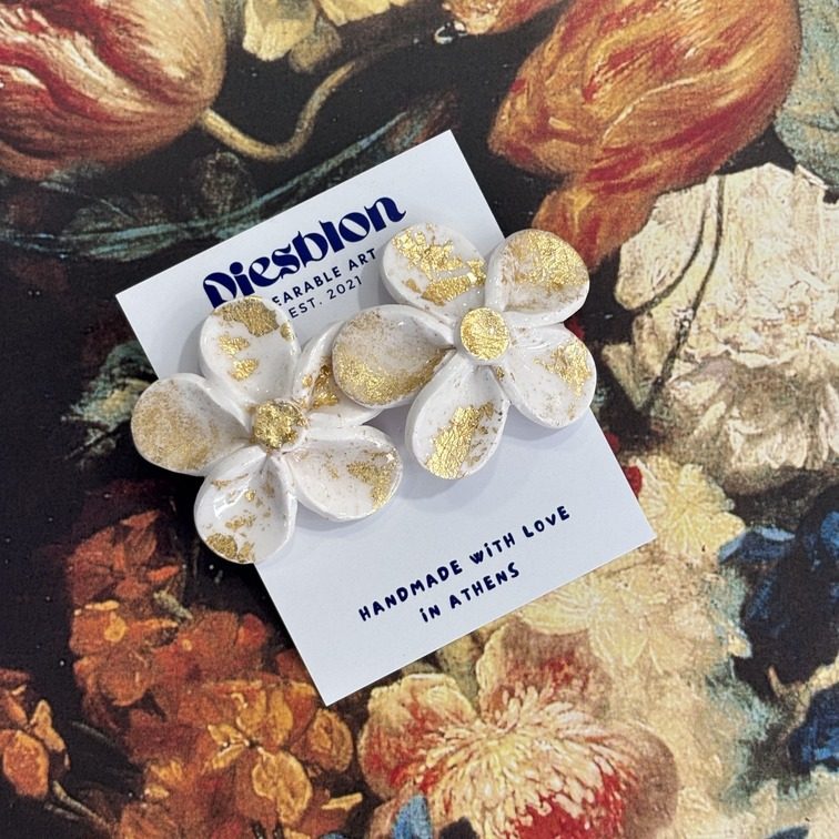 Handmade Polymer White with Gold Earrings – Diesblon