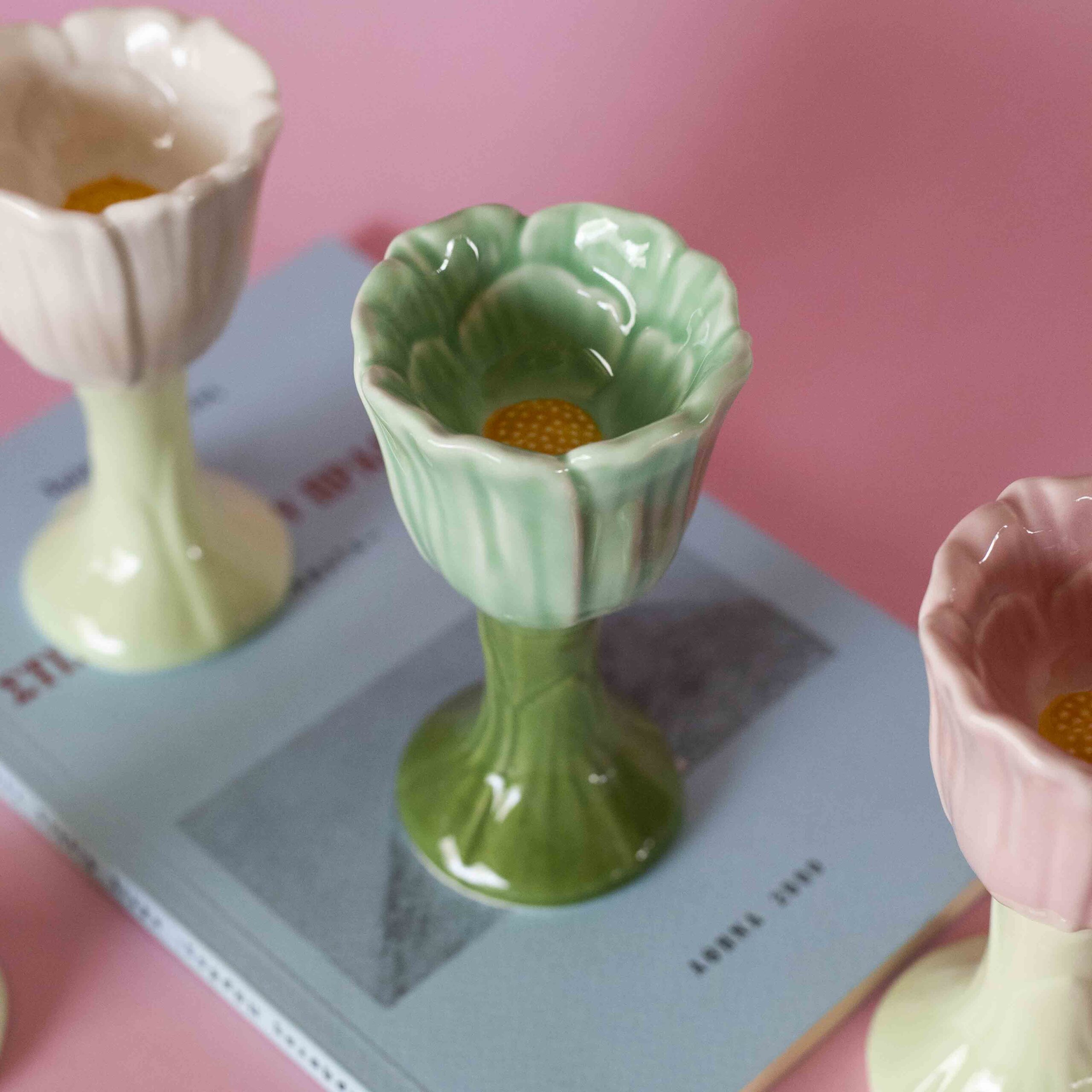 Κεραμική αυγοθήκη λουλούδι σε ανοιχτό πράσινο χρώμα.