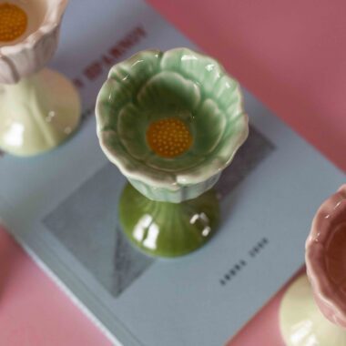 Κεραμική αυγοθήκη λουλούδι σε ανοιχτό πράσινο χρώμα.