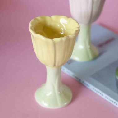 Κεραμική αυγοθήκη λουλούδι σε κίτρινο χρώμα.