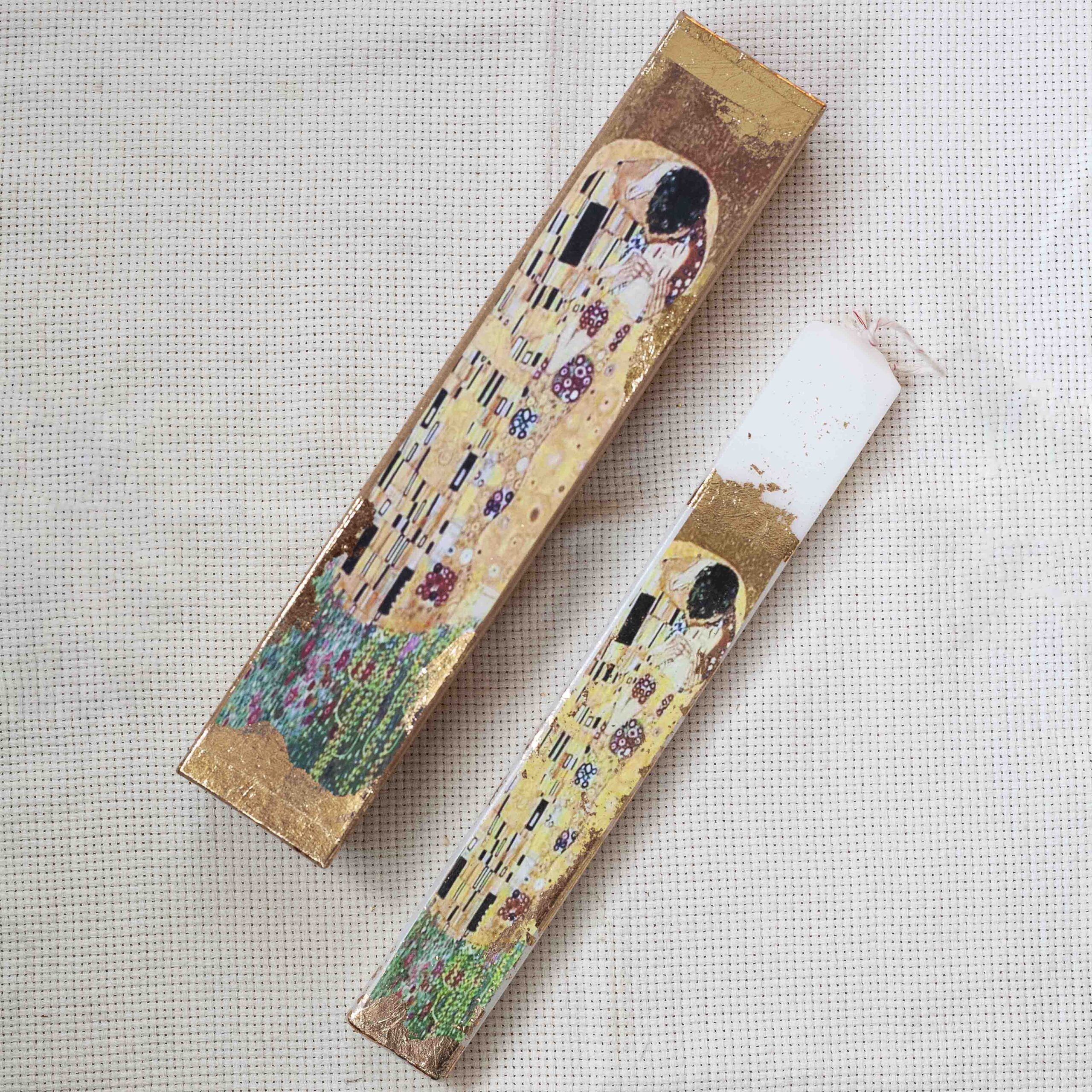 Αρωματική πασχαλινή λαμπάδα εμπνευσμένη από την τέχνη, με πλούσια χρώματα και χρυσές λεπτομέρειες. Ένα εντυπωσιακό σχέδιο που ξεχωρίζει και προσφέρει μια πιο statement αισθητική.
