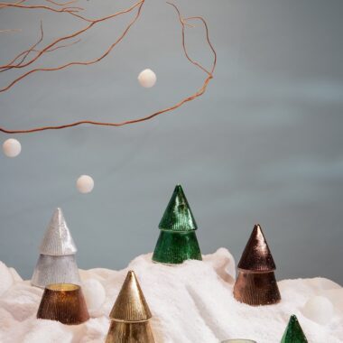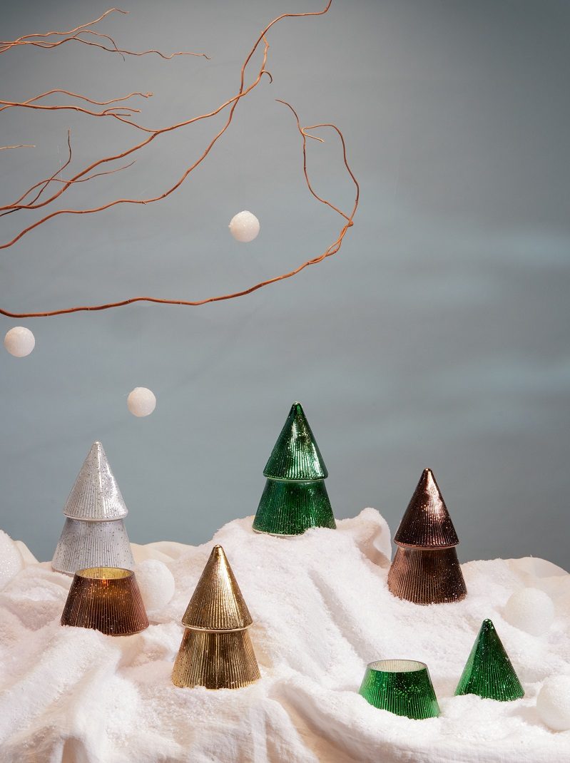 Φτιαγμένο από 100% φυσικό κερί σόγιας και βαμβακερό φυτίλι, το κερί αυτό ξεχωρίζει για το μεταλλικό του χρώμα και τη μοναδική του μορφή, εμπνευσμένη από Χριστουγεννιάτικο δέντρο.