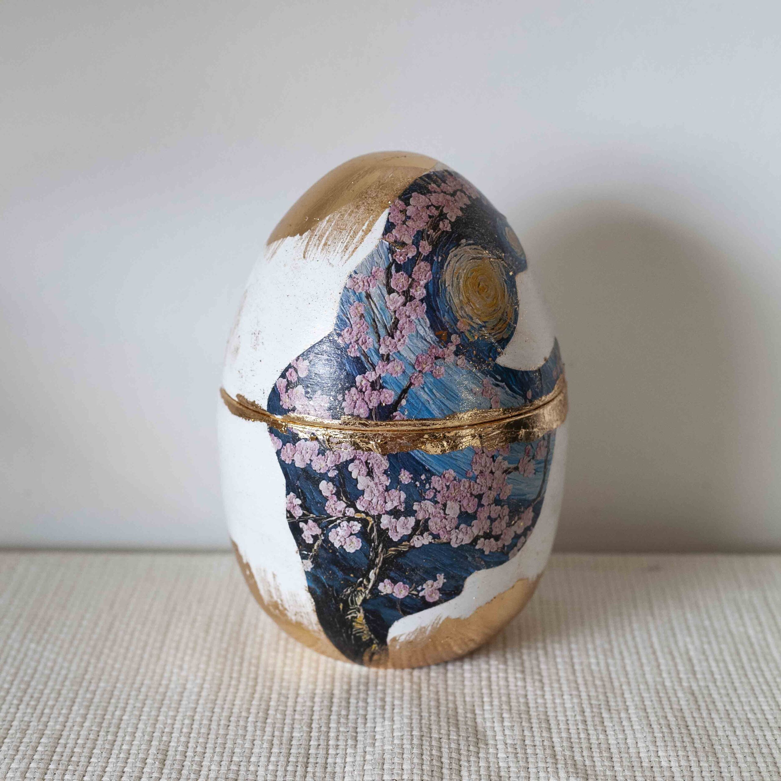 Μεγάλο Διακοσμητικό Αυγό Έναστρη Νύχτα & Αμυγδαλιά με Φύλλο Χρυσού | Χειροποίητο