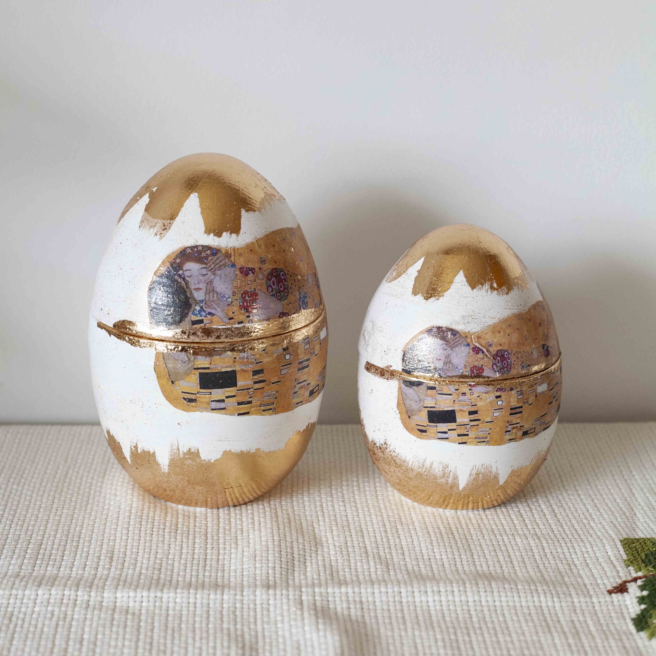 Μεγάλο Διακοσμητικό Αυγό «Το Φιλί» με Φύλλο Χρυσού | Καλλιτεχνικό Πασχαλινό