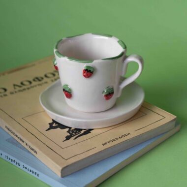3D Strawberry Cup with a Saucer – Mugaki