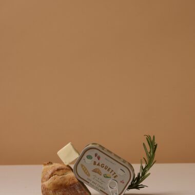 Φτιαγμένο από 100% φυσικό κερί σόγιας με διπλό βαμβακερό φυτίλι, τοποθετημένο σε μεταλλικό δοχείο εμπνευσμένο από κονσέρβες σαρδέλας.